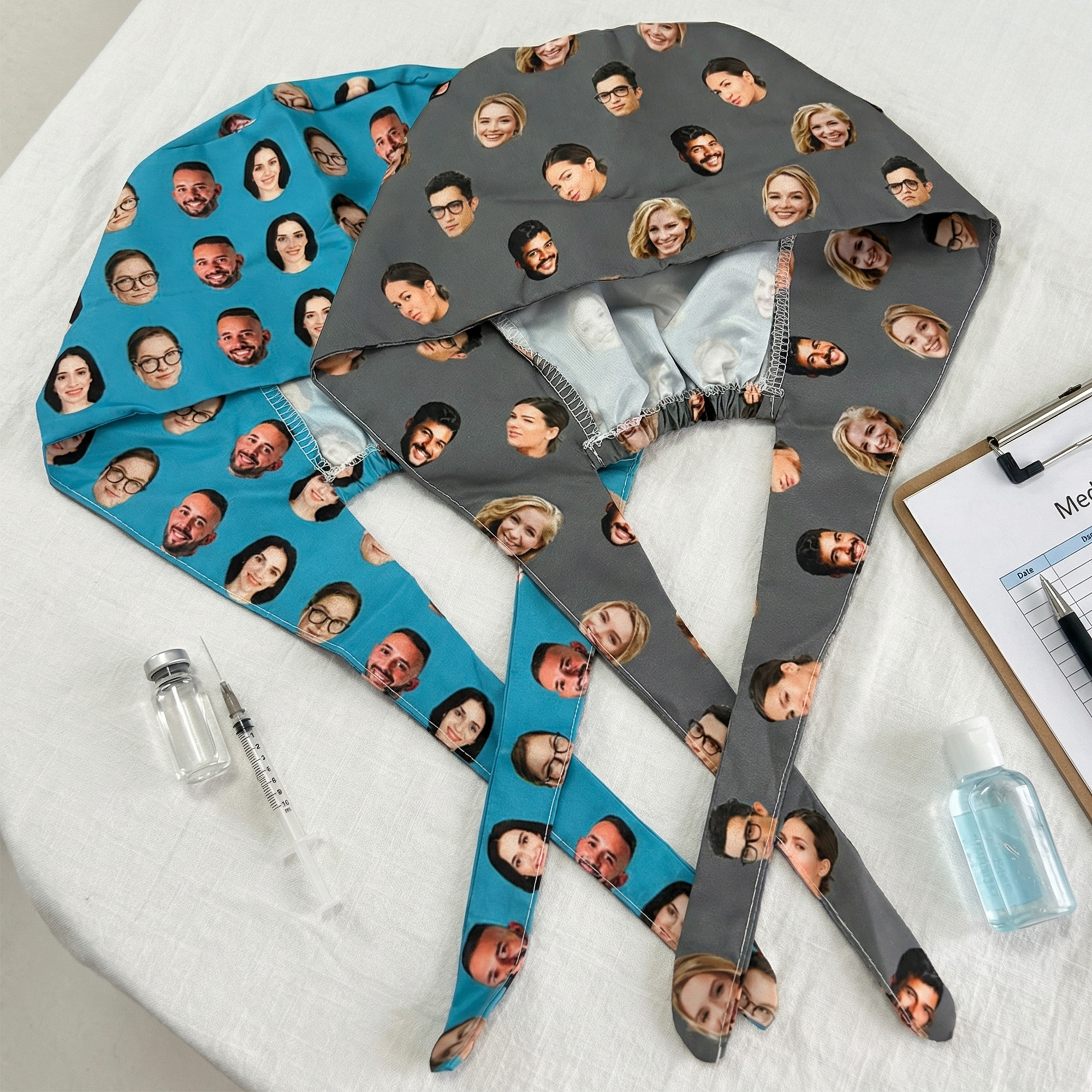 Custom Design - This unique scrub cap allows you to personalize it with 1 to 5 faces of your beloved pets or people. Celebrate your furry friends while you work, making your scrubs functional and a fun expression of your personality.